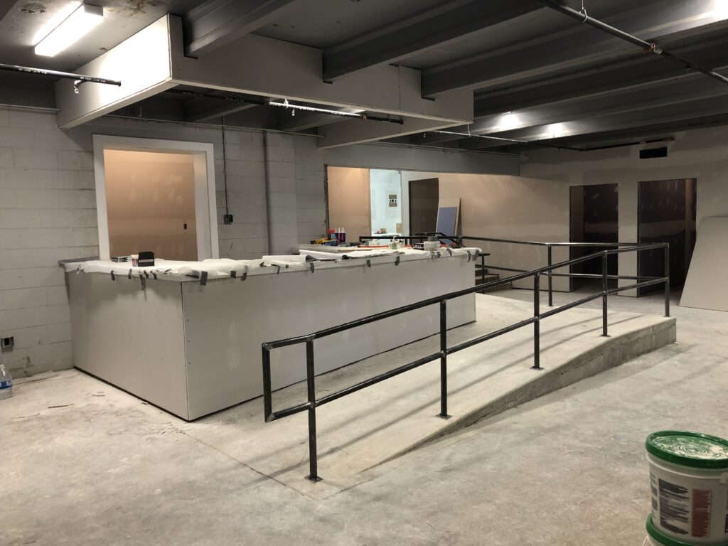 Designing the conversion of this older building into the new shelter was challenging. The building is two levels and needed to be made accessible throughout. All the building services (electrical, mechanical and plumbing) are being replaced. A new fire suppression and fire alarm system are also being installed. Security cameras and a card access system are being installed to address security concerns.